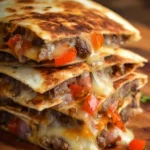 Cheese-Crusted Steak Quesadillas are a delicious way to enjoy steak with a cheesy twist. This recipe combines the savory taste of skirt steak with soft tortillas and gooey cheese, making it a perfect meal for family dinners or casual gatherings. The addition of sautéed bell peppers and onions adds a nice crunch and flavor, while the chipotle lime mayo gives it a zesty kick. It’s easy to prepare and guarantees satisfaction with every bite.