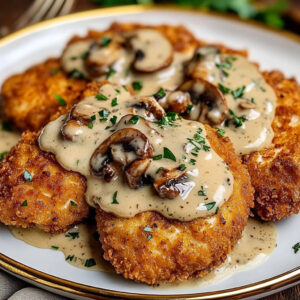 This Golden Crispy Chicken with Parmesan Mushroom Sauce has become a staple in my home, loved by my family and friends alike. I can’t wait for you to try it! Each bite is a fusion of flavors and memories, and I know you’ll love it just as much as I do. So roll up your sleeves, gather your ingredients, and let’s create something delicious together! If your family asks for seconds, just like mine does every time, you can smile and say you’ve found a new favorite dish! Happy cooking!