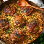 A comforting one-pan dish featuring chicken thighs, Jasmine rice, and smoked paprika, perfect for any night of the week.