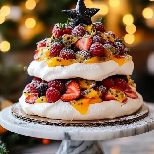 This Pavlova Christmas Tree with Fresh Fruits has become a cherished part of my holiday celebrations, and I’m so excited for you to try it. I know you’ll love it as much as I do! The light, airy meringue combined with the luscious whipped cream and colorful fruits creates such a delightful experience. It’s a dessert that encourages togetherness, laughter, and joy at your table, just as it does in mine. So gather your loved ones, whip up this enchanting dessert, and watch as it brings warmth and sweetness to your holiday celebrations. Let me know how it turns out—I can’t wait to hear your stories about this lovely treat!